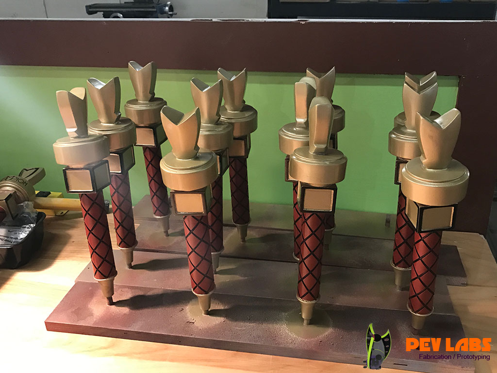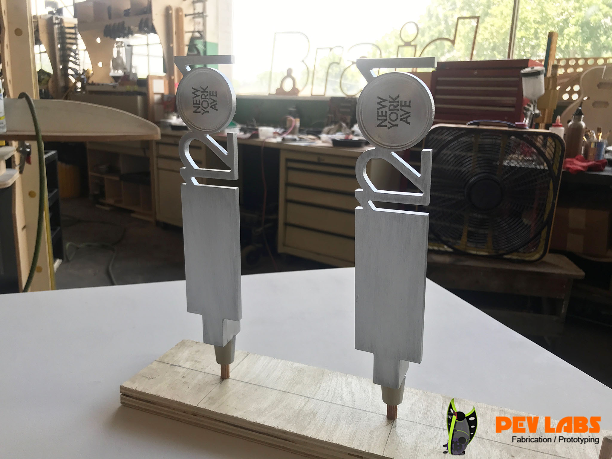 PEV Labs has produced custom branded products for the manufacturing industry and service industry. At least a half dozen different small manufacturing runs of custom tap handles for companies in Virginia and Washington DC. These are often done by CNC milling hardwood for small runs, or using 3D printing to make silicon mold for epoxy resin casting of larger volumes. We begin the process by design a 3D model in AutoDesk Fusion 360. Prices range from $40 a handle to $80 handle depending on complexity and volume. Please note we can not produce several hundred of these per month, but are more than happen do product run of 100 units or less. We an on-demand manufacturer with no minimum order and offer industrial design services if you are in need of some visual assistance. Design costs of $250 gets you three design comps are created based on your branding. You are not obligated to use us for fabrication if we design. We provide CAD files and 3D models if you have a fabricator relationship already in place, or into DIY.