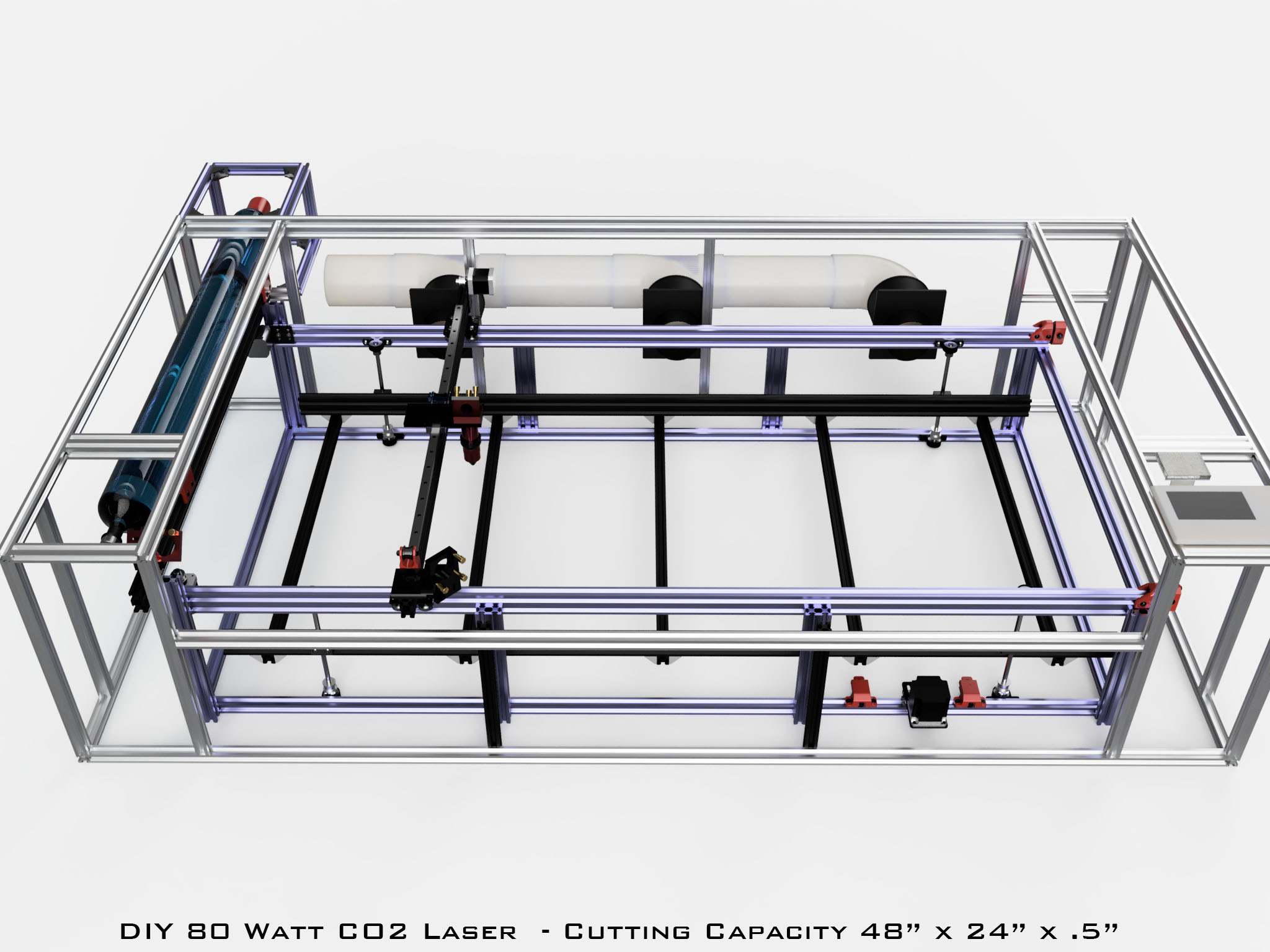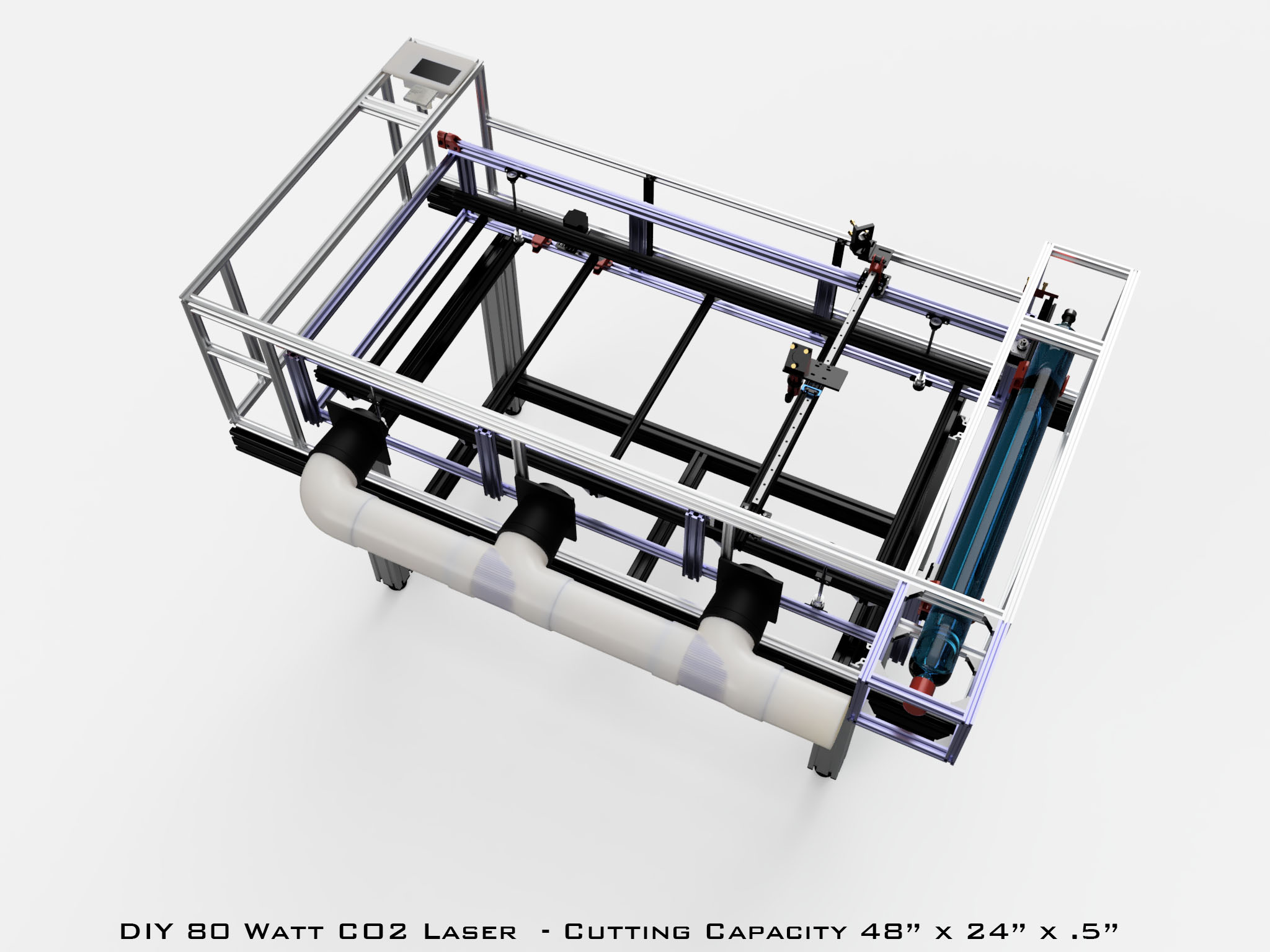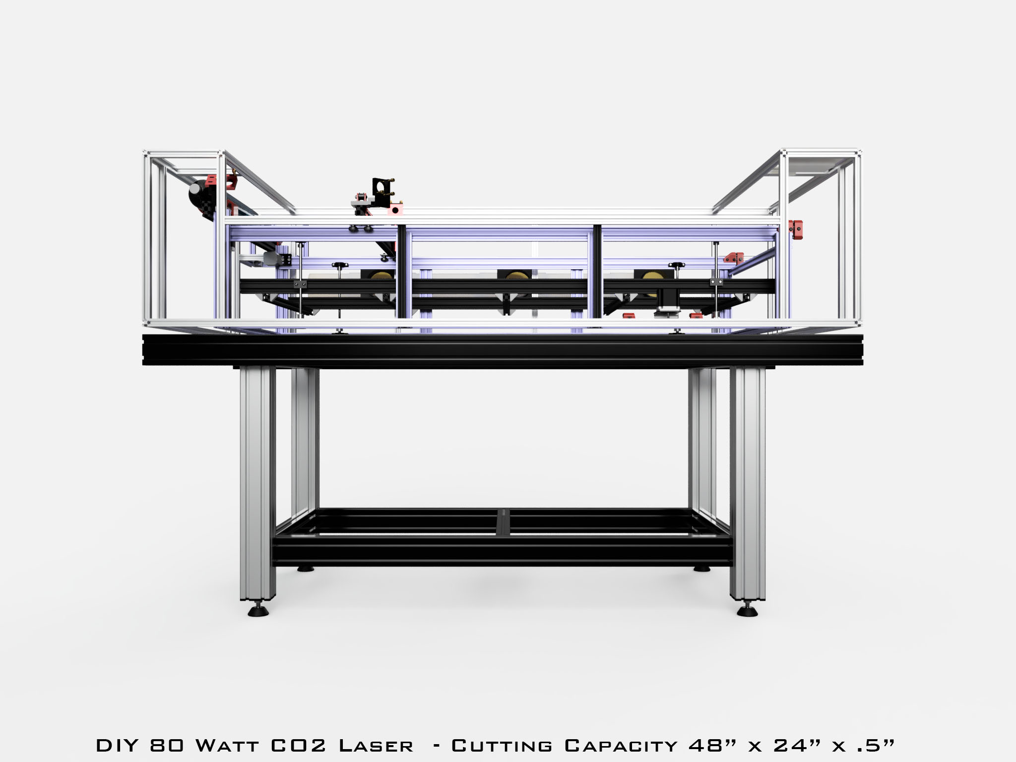 Here are some 3D renders of our DIY Laser Engraver project base frame project currently under development. We are utilizing extruded aluminum stock with a mixture of natural and anodized black for a particular aesthetic what we like. Large aircraft grade 8080 mm for the base legs and 8040 mm for the base frame construction. The laser base frame, laser inner chassis and laser outer shell all are made of T-Slot aluminum to allow for ease of construction. Also allows for the unit to be productized and sold as a kit if we choose to moving forward. T-slots and V-slots makes design changes or expansion in the machine fairly simple. The outer shell will be thin aluminum sheets with tinted polycarbonate panels. These renderings are pre-build, so some things will be changing along the way as certain physical realities present themself that were not so obvious in the modeling stage. Iteration is a normal prototyping condition.