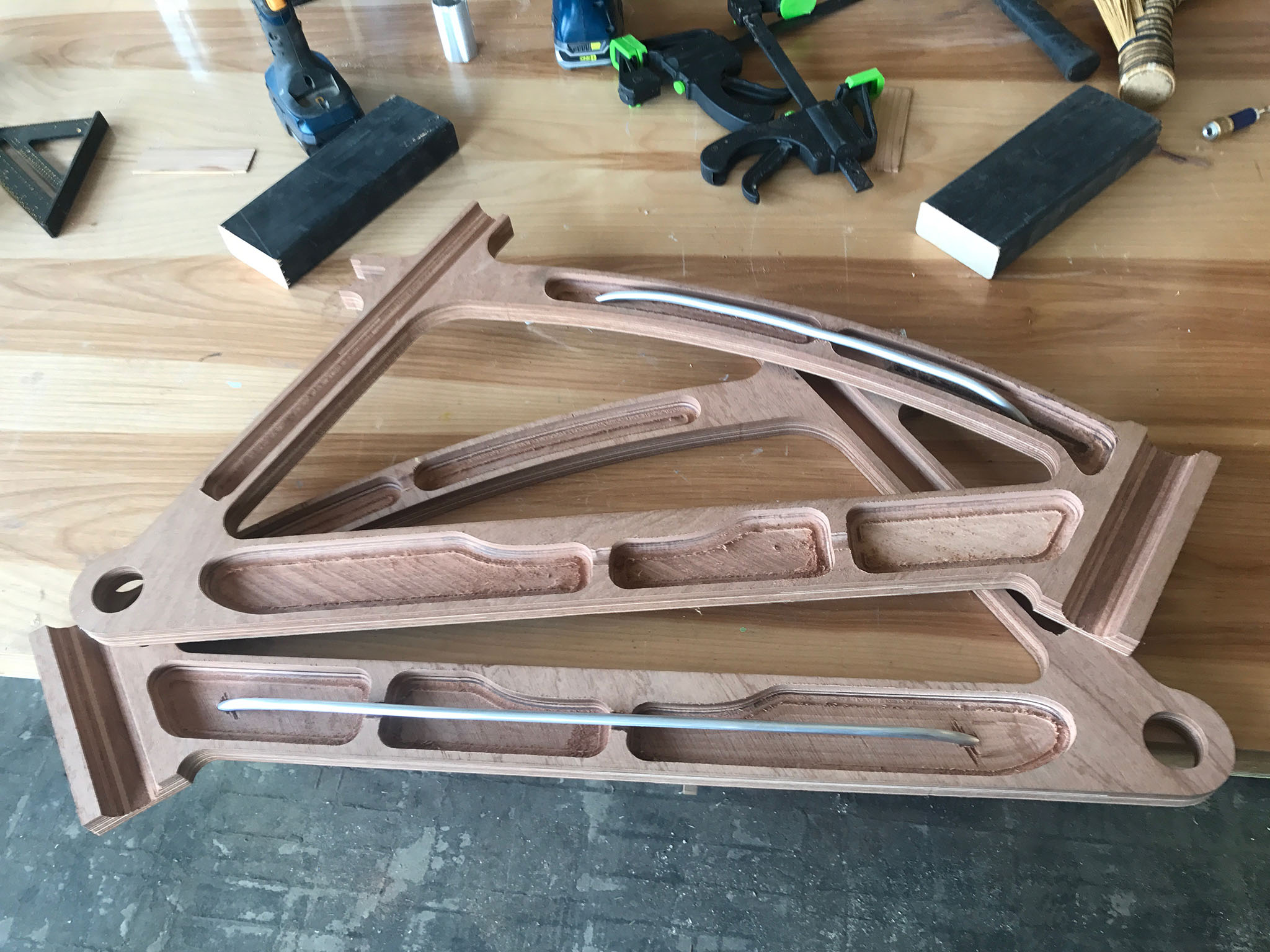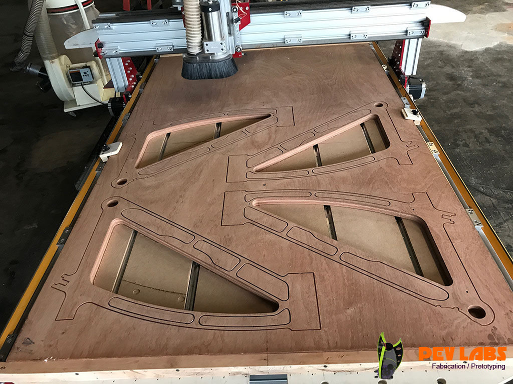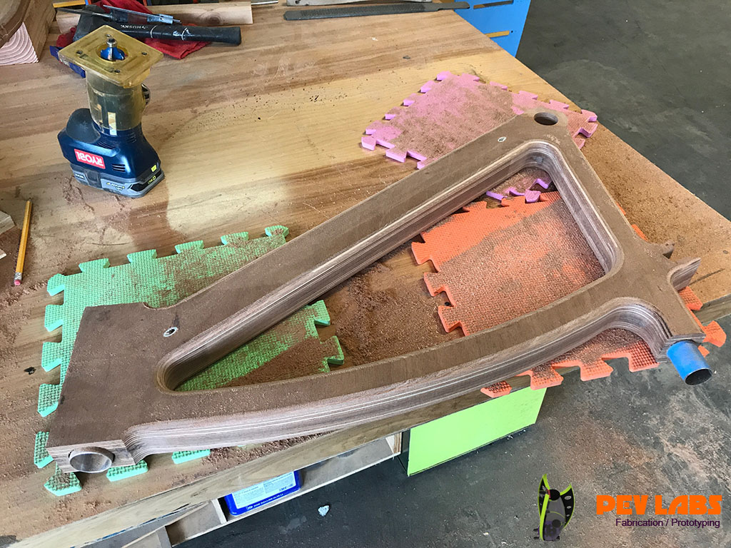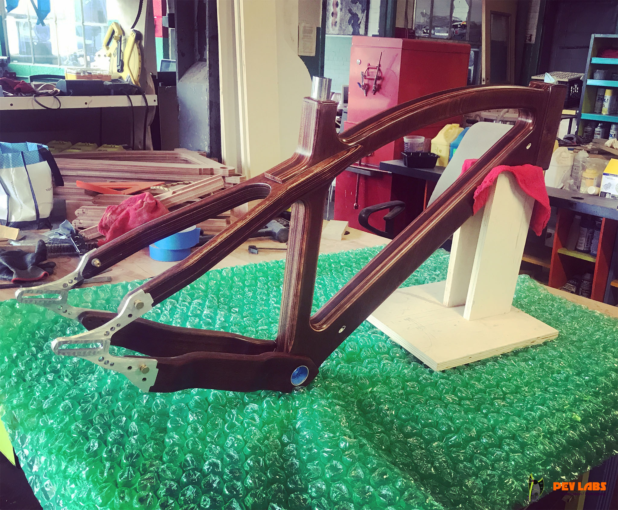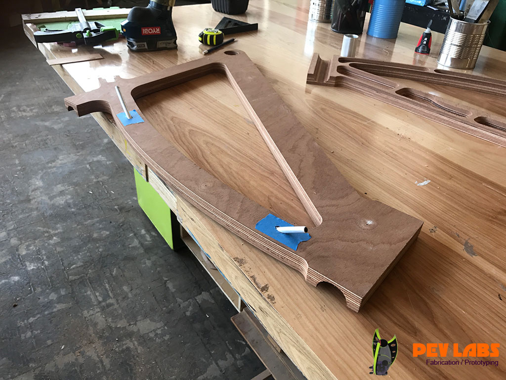 A visual overview of the many steps involved in prototyping version 5.xx of a handmade wooden bicycle. Here we are making one manual bike and three more electric wooden bicycles. This production run should yield four wooden sapelli bikes from one sheet of one inch thick custom produced plywood. Frames are Sapele ply, seat stay is Sapele ply, solid Sapelli chain stays and for the dropouts we custom CNC mill out of a sheet of 3/8 aluminum. Making Bikes in this bespoke fashion is fairly precise with accuracy and attention to details paramount. This project utilized Industrial Design, Digital Fabrication and Traditional Fabrication skills along with a bit of good old fashion Woodworking. This bike is an example of our on-demand manufacturing services. We can manufacture the products as the orders come in. Catalog of Images for Wooden Electric Bike Prototype Version 4 Here.