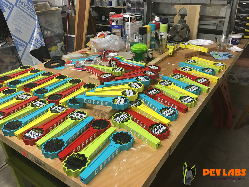 Finishing can make or break a project. No matter how much care went into the fabrication process. A bad finish will diminish the product while a good one will accentuate the outcome. There are many ways to top of a material ranging from labor intensive hand finishes too modern on coat spray finishing services. Most of our projects head out of the shop as natural wood for the client to finish the product as we do so many CNC and small run manufacturing of parts. Spraying with professional spray equipment to hand finishing on the below wooden bike as it receives a waterproof marine grade epoxy finishes. Hand finishing compounds like oils and waxes are excellent for finishing woodworks. Spray finishes of objects offer colorful, shiny or matte aesthetics treatments and protection. Two part Epoxy coatings are superior for protecting your wonderfully constructed project that will be exposed to the weather. Finishes as topcoats for woodworking is probably the most common in our shop. We can dissemble items as needed along with sanding and other prep work required before finishing.