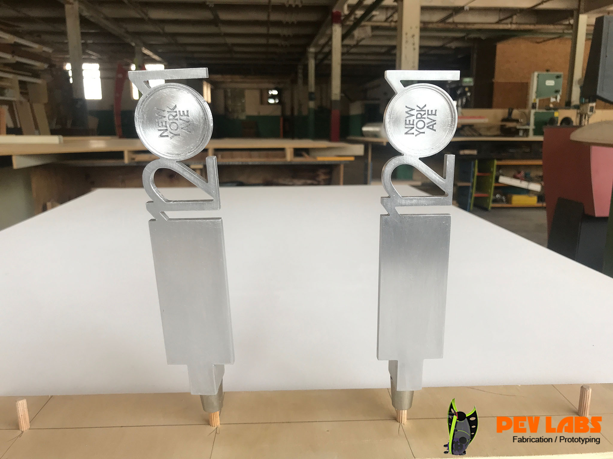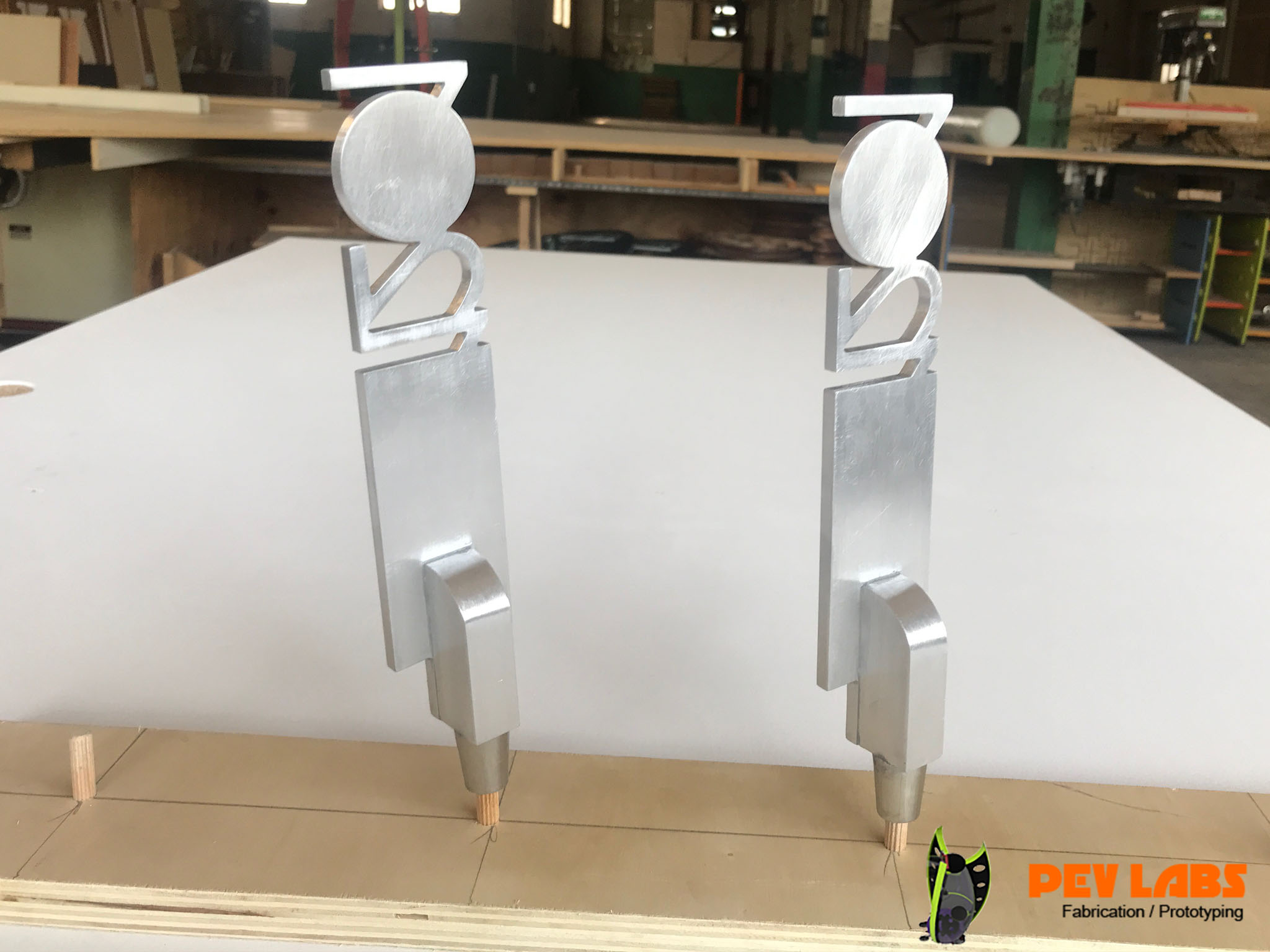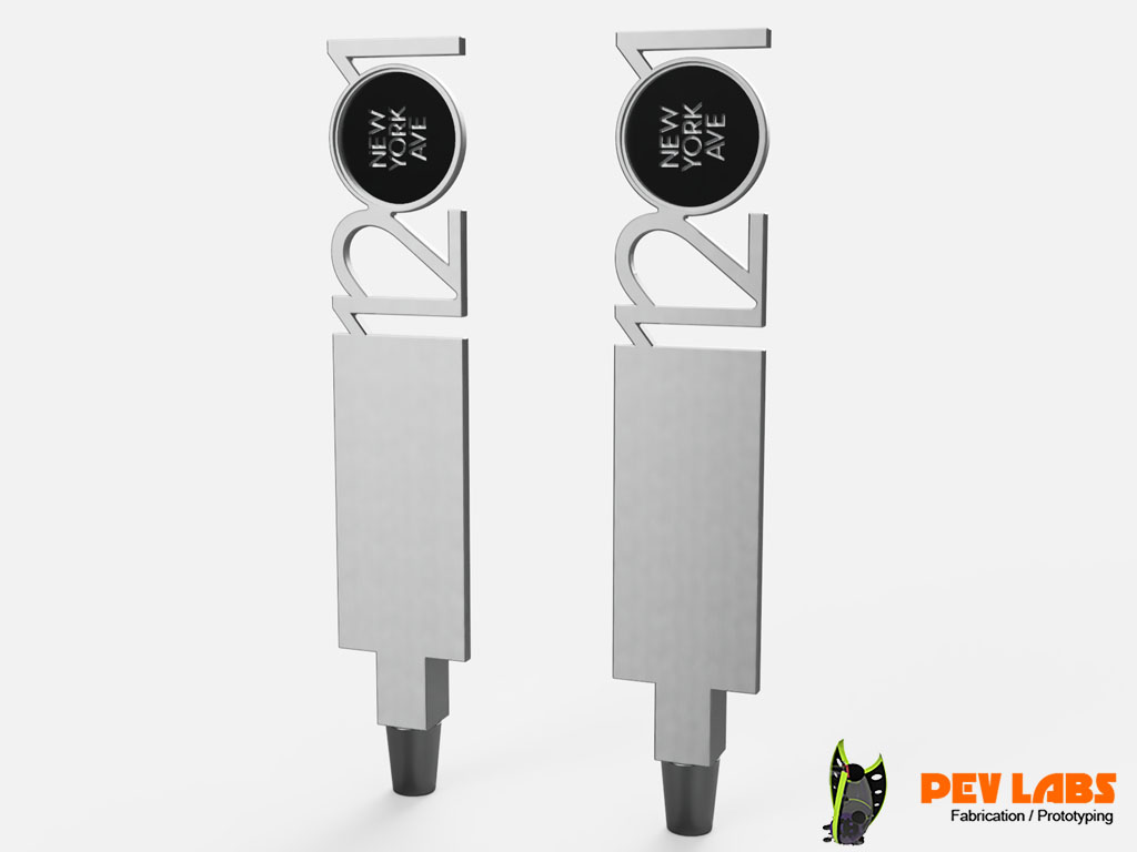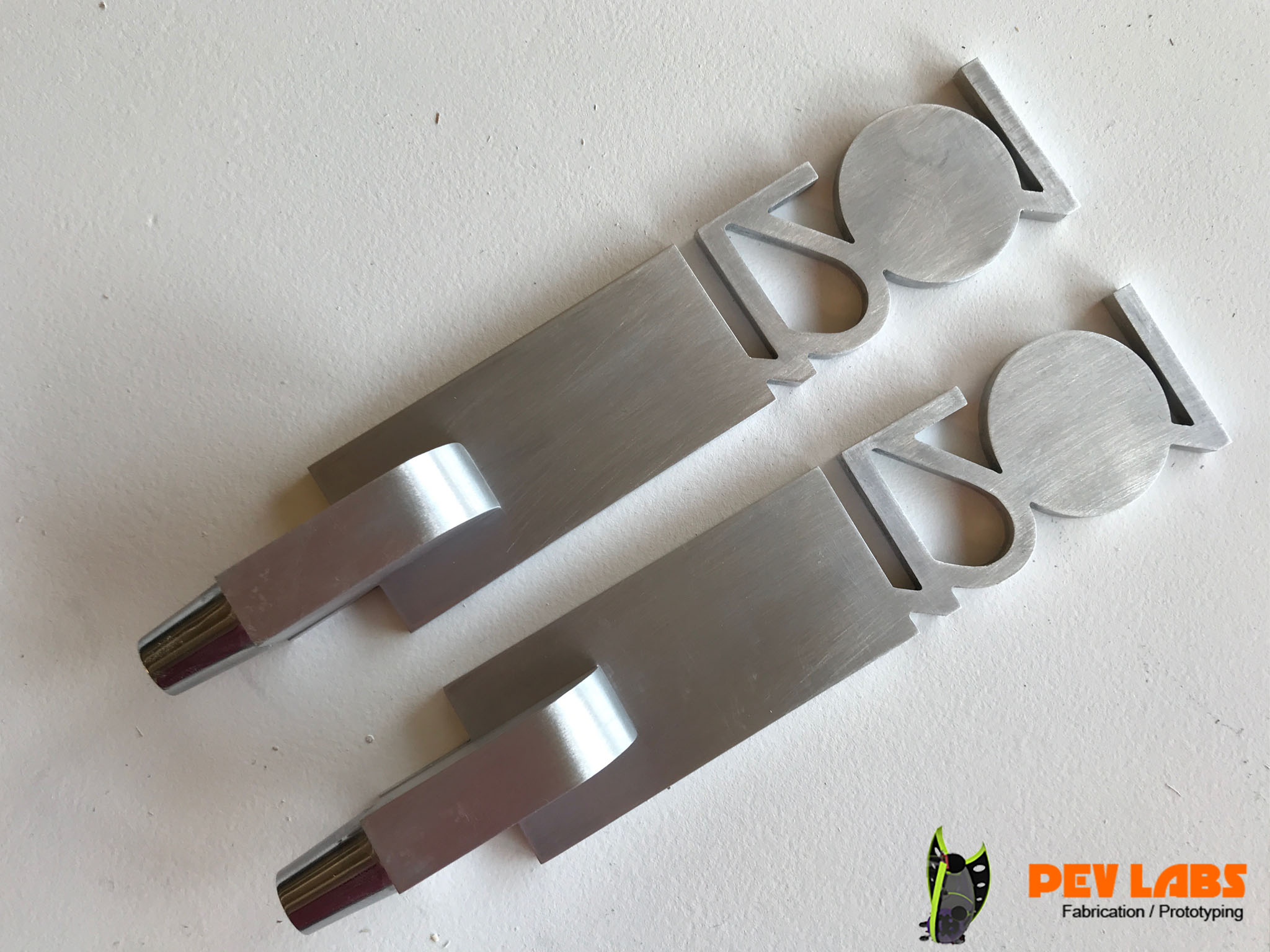 All aluminum metal tap handles produced from 0.25" aluminum plate with steel chrome ferrules.
