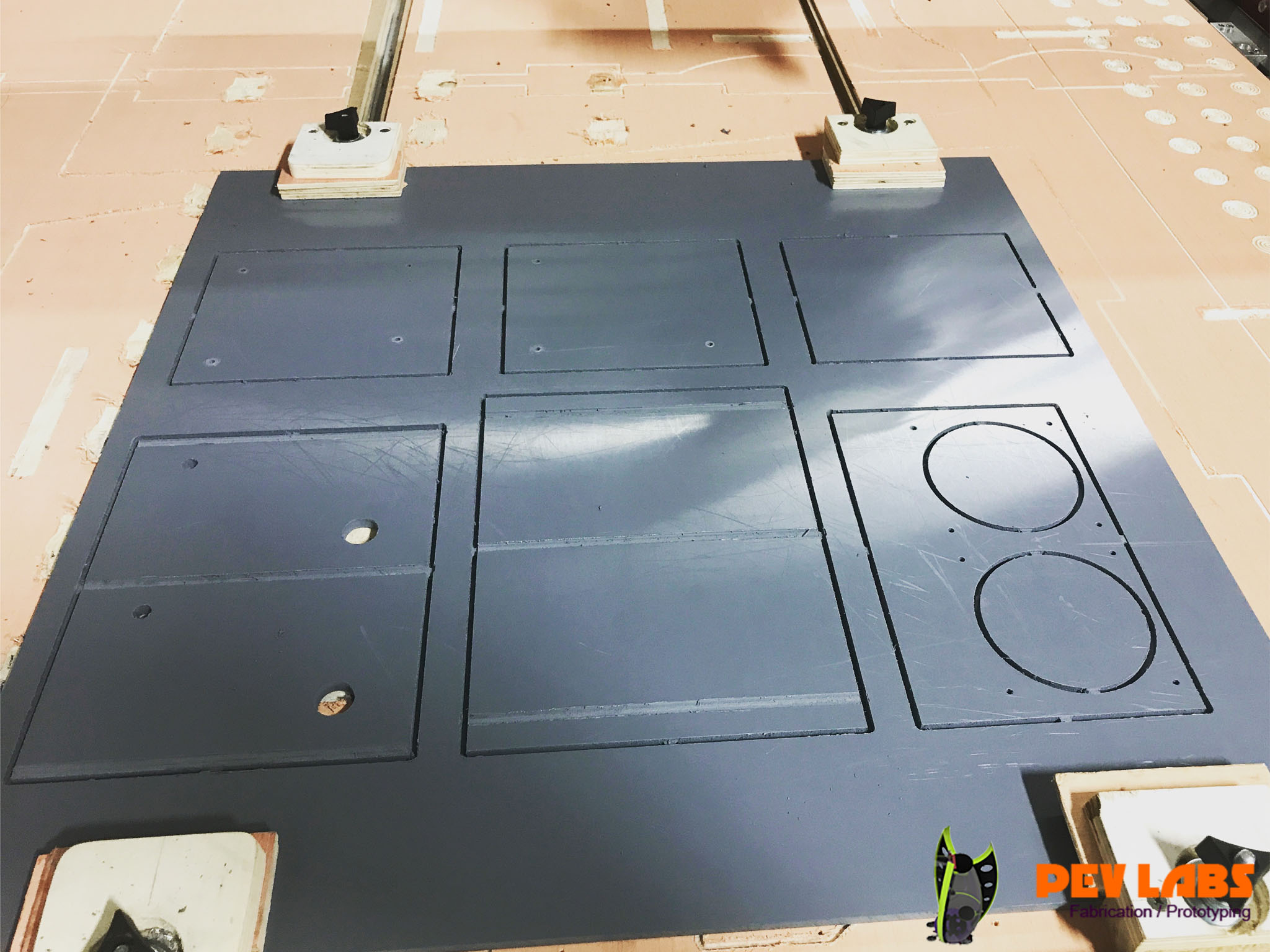 PEV Labs is capable of milling varying types plastic with our CNC routing machine, or manual milling machine. Common CNC plastic milling projects include acrylic, polycarbonate, HDPE and PVC sheet. Polysulfone is used in stock or rod form when thermoplastics are required. Often used for chemical stability it became a popular bed material 3D printers.We are not opposed to setting up a fourth axis if you have a project that requires CNC lathe capabilities. Clear plastic is milled regular in our shop for making jigs and templates as it is handy to see though when lining up. Machining plastics over wood and composite for templates offers a material less susceptible to movement. This in turn offers more consistency, or dimensional stability in replication at a low cost. Signs, parts, branded products, merchandising displays and hobby DIY projects are often made of varying opacities of plastic for back lighting or material contrast. Our high powered CO2 laser project in development will offer laser cut plastic options in the near future.