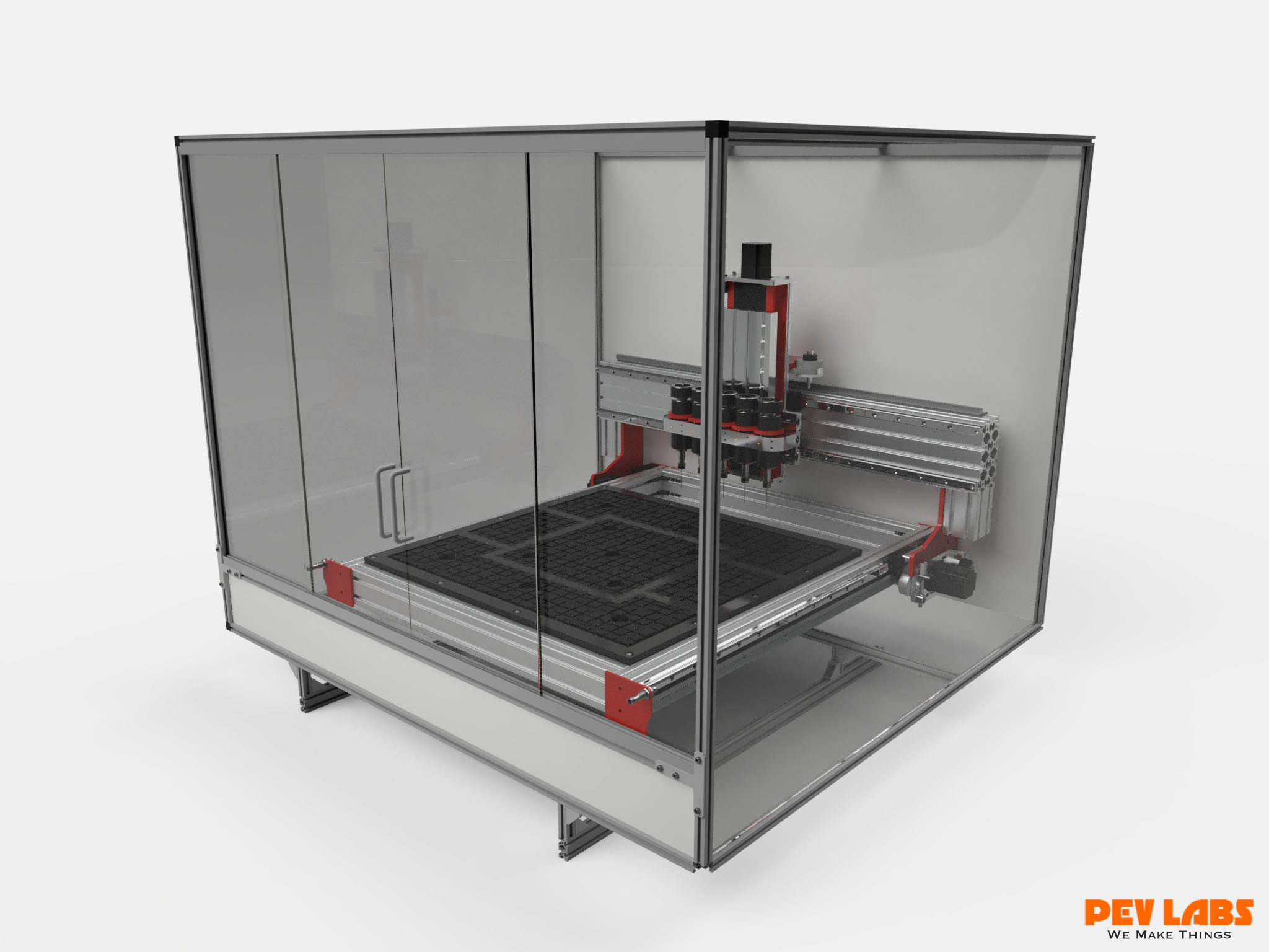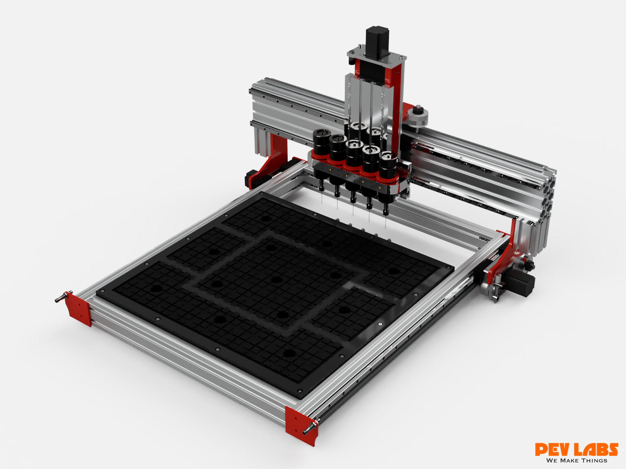 Custom designed multi-spindle CNC Machine with vacuum table. This particular model is a small format and deploys up to five small spindles. The intent of this machine is to produce five sets of fairly tiny parts simultaneously. The custom milled spindle mount has micro Z-depth adjuster rings along with front set screws to lock the spindle heights once adjusted. A custom multi-spindle dust boot to accommodate the many spindles. One could optionally use three spindles in stead of five. Pictured are 52mm air cooled hobby spindles. ER11 collets accept 1/8 end mills. Units run from 3,000 up to 12,000rpm on 24-100 volts DC. Spindle run out 0.01-0.03. We use our DIY large format CNC machine daily as it is the core of our CNC milling service offerings. CNC machining for your personal or business manufacturing needs. Visit our 90 watt DIY CO2 laser cutter engraver project build currently in progress.