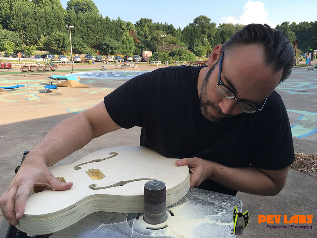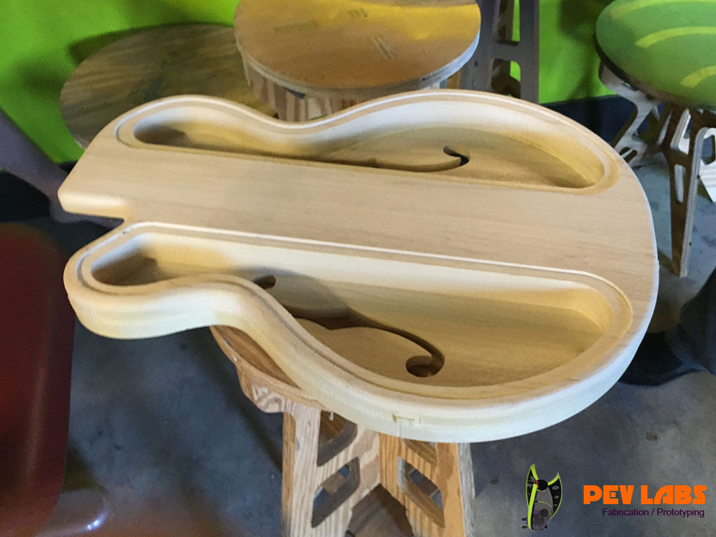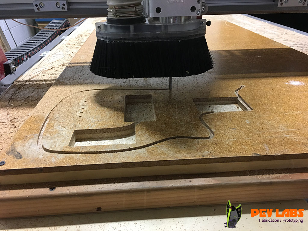 We build design and build electric guitars and purely electronic musical instruments, for fun and client requests. Repairs are also a possibility depending on needs but our focus is on making. We made a few guitars from scratch including our own necks and fretboards. We love neck though construction, though its more cost effected to purchase pre-made necks. Our CNC machines are awesome for getting the fret bar spacing fairly precise when taking this on. We also make electric guitars per your specifications or designs. Milling custom bespoke guitar bodies are fairly straight forward. Information is readily available for lying out various pickups, bridges, tremolos and neck pockets. Also comfortable with Floyd Rose or other modern Tremelo CNC pocketing. Visit our electronics and circuit design page if interested in what goes on beyond our tactile skills. If you are a musical instrument maker and would like parts milled please reach out.